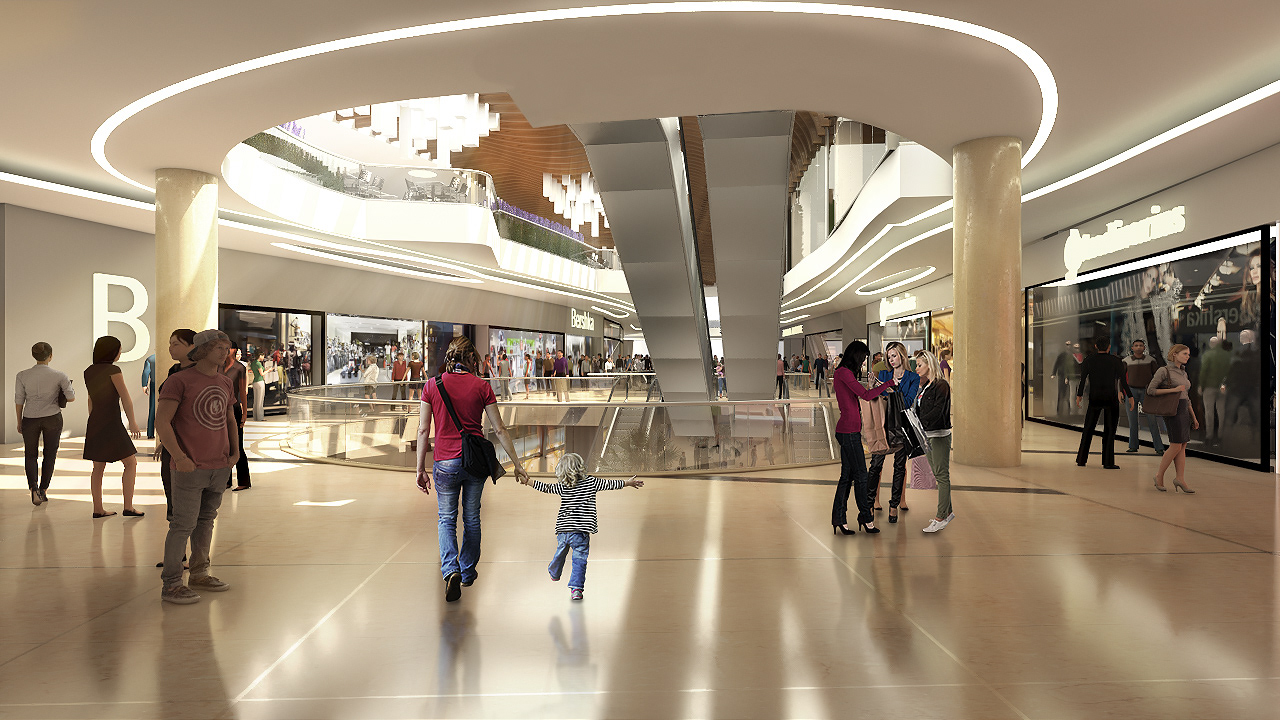 Visualización arquitectónica 3D fotorrealista de proyecto Centro comercial Mall Plaza en Barranquilla Colombia.