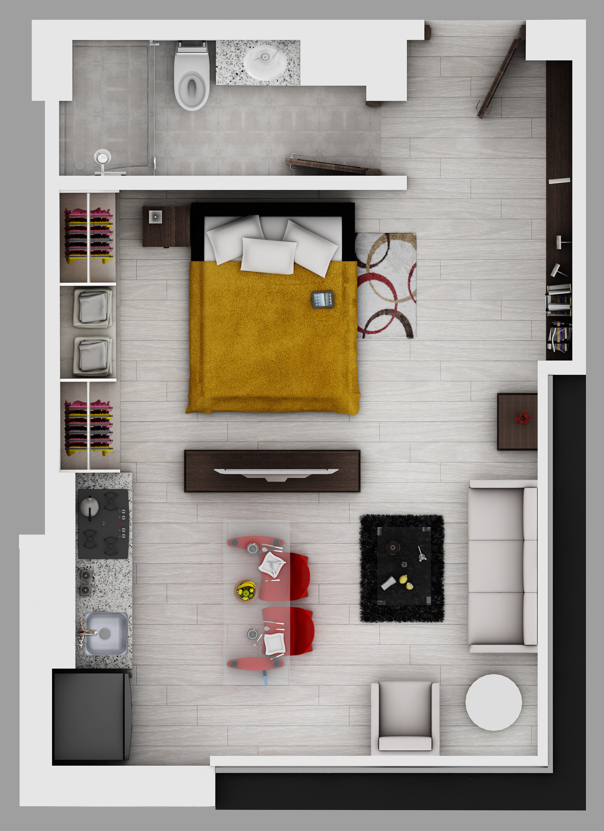 Visualización arquitectónica 3D fotorrealista de Proyecto Chiaki en Bogotá.